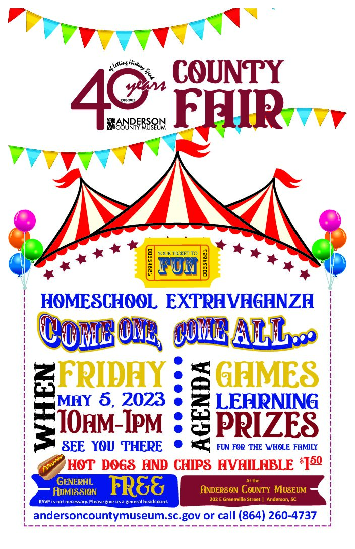 https://www.andersoncountysc.org/homeschool-extravaganza-planned-at-the-anderson-county-museum/All homeschoolers are invited to attend May 5, 10 a.m. until 1 p.m. Come one, come all to the exciting Homeschool Extravaganza – an event planned just for homeschooled students. The Anderson County Museum has let history speak for 40 years. This event is planned as an interactive and engaging way for homeschool students to Read More... Fishers of Men National Tournament Trail to Crown the 2023 Silver Anniversary National Champions