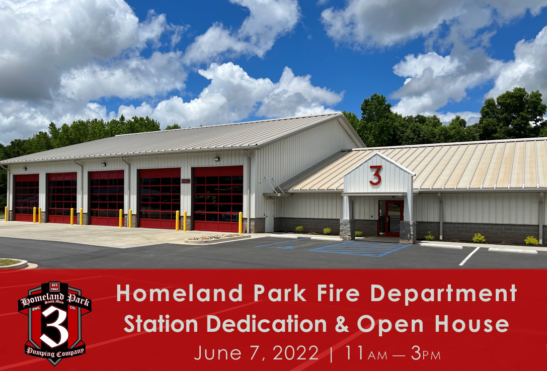The Homeland Park Fire Department will host a Station Dedication & Open House on Tuesday, June 7th from 11 am – 3 pm.