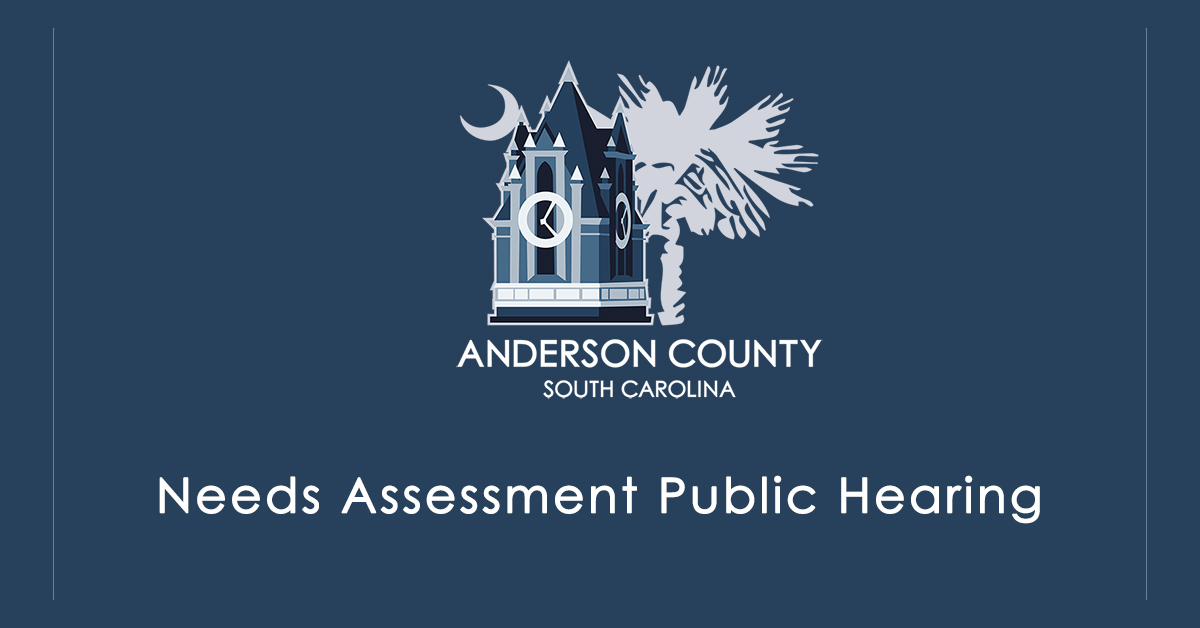 Anderson County with the assistance of the Appalachian Council of Governments is conducting an online public hearing to allow for public input on community needs and priorities for housing, public facilities, and economic development. The public hearing will begin at 10:30 AM on Wednesday May 18th, 2022 at the Historic Courthouse, 101 South Main Street, Anderson, SC.