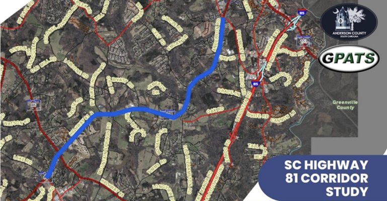 Anderson County and GPATS is conducting a study of the Highway 81 corridor from the Wren School Rd/Lake Rd intersection to the Powdersville Main/ Piedmont Rd intersection. Anderson County requests comments along this section of Highway 81. To make a comment, please visit the wiki map here: https://wikimapping.com/SC-Highway-81-Corridor-Study.html.