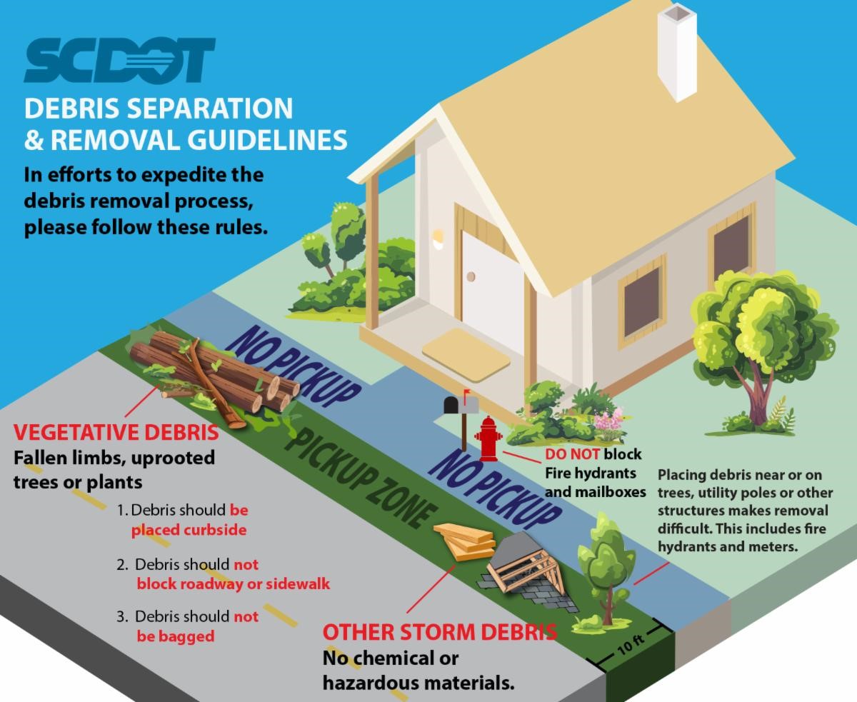 Residents having trouble getting debris to the right-of-way due to limited road frontage or debris blocking the way are encouraged to call the SCDOT directly at 855-467-2368.